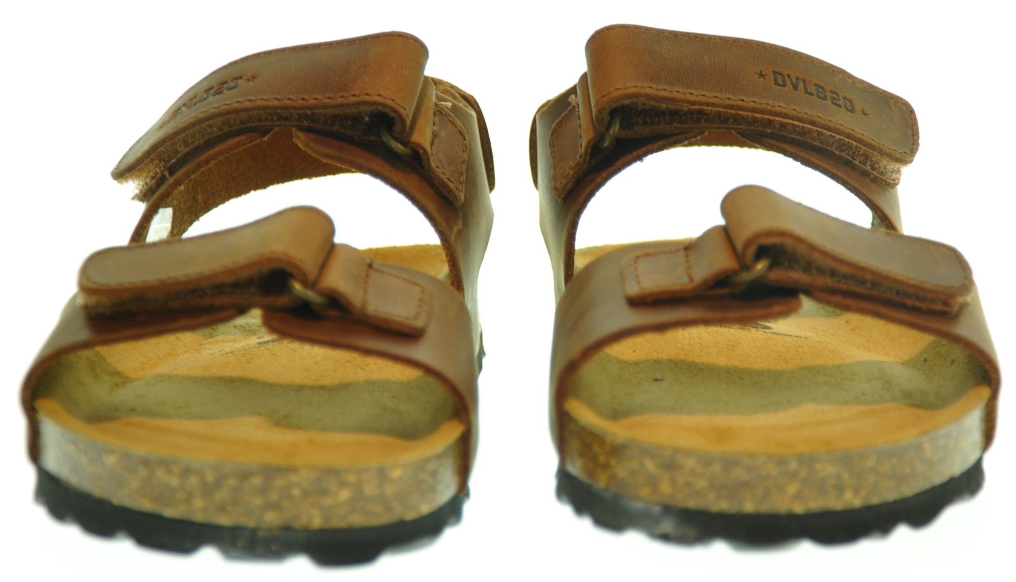 Stoere jongens sandaal van het merk Develab in cognac leer, en met handige verstelbare klittenband. Deze sandaal heeft verder een voorgevormd voetbed met een rubberen loopzool.